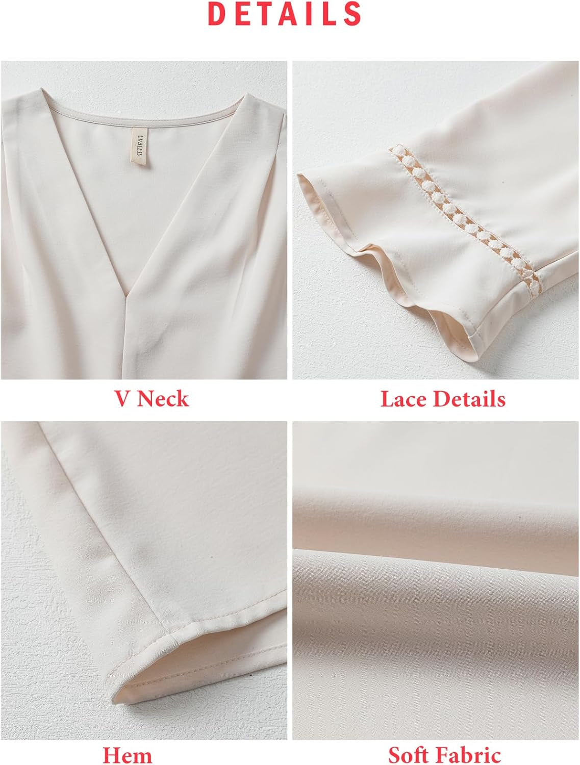 Women'S 3/4 Sleeve Tops Dressy Casual Pleated V Neck Business Work Blouses Office Shirts - Beige / Medium