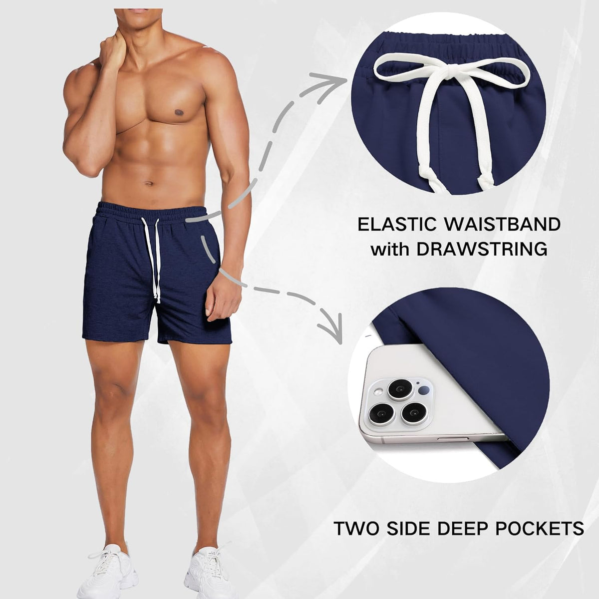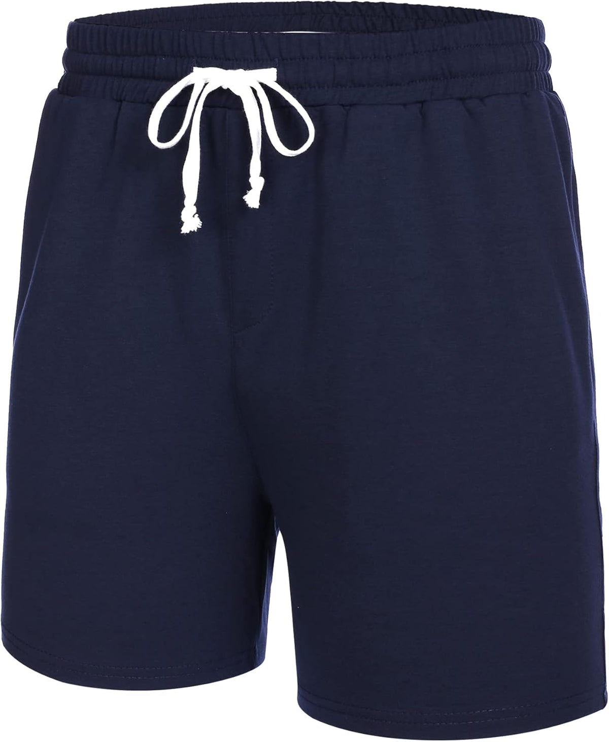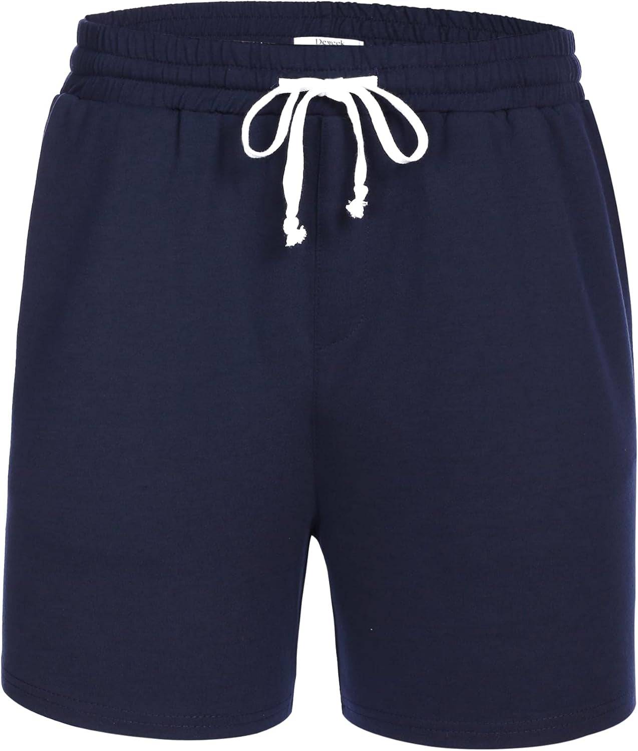 5.5 Inch Mens Pajama Shorts Sleep Cotton Lounge PJ Lightweight Elastic Waist Drawstring Nightwear Bottom with Pockets - Nave Blue / Xx-Large