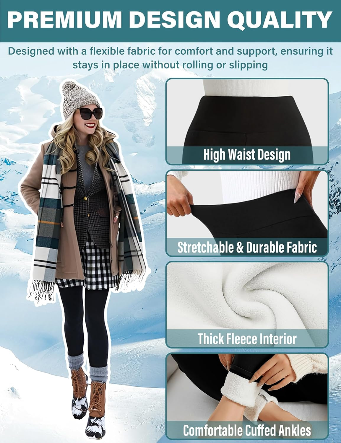 Thick Fleece Lined Leggings for Women Tummy Control High Waisted Workout Thermal Warm Soft Yoga Pants for Cold Winter - Black / Small