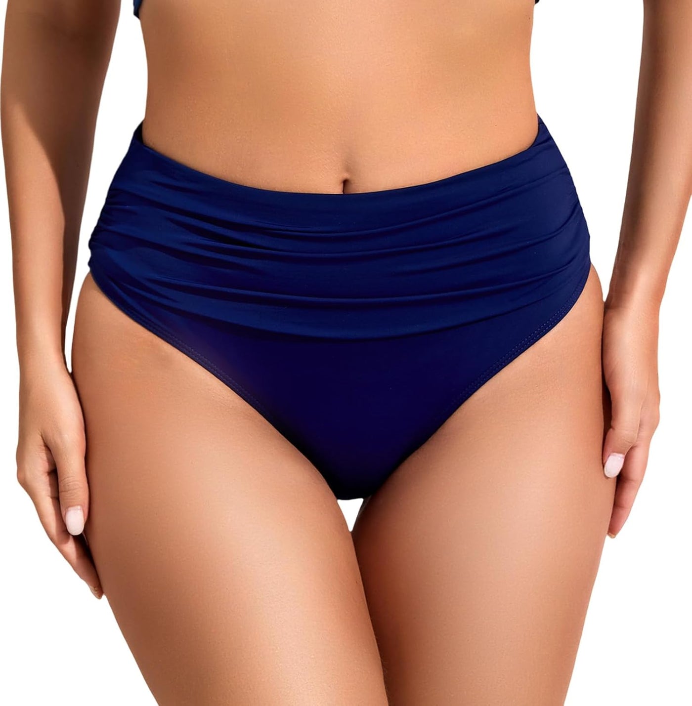 Women'S High Waisted Full Coverage Bikini Bottom Ruched Bathing Suit Bottoms for Women Tummy Control Swim Bottoms - 2 Navy / Large