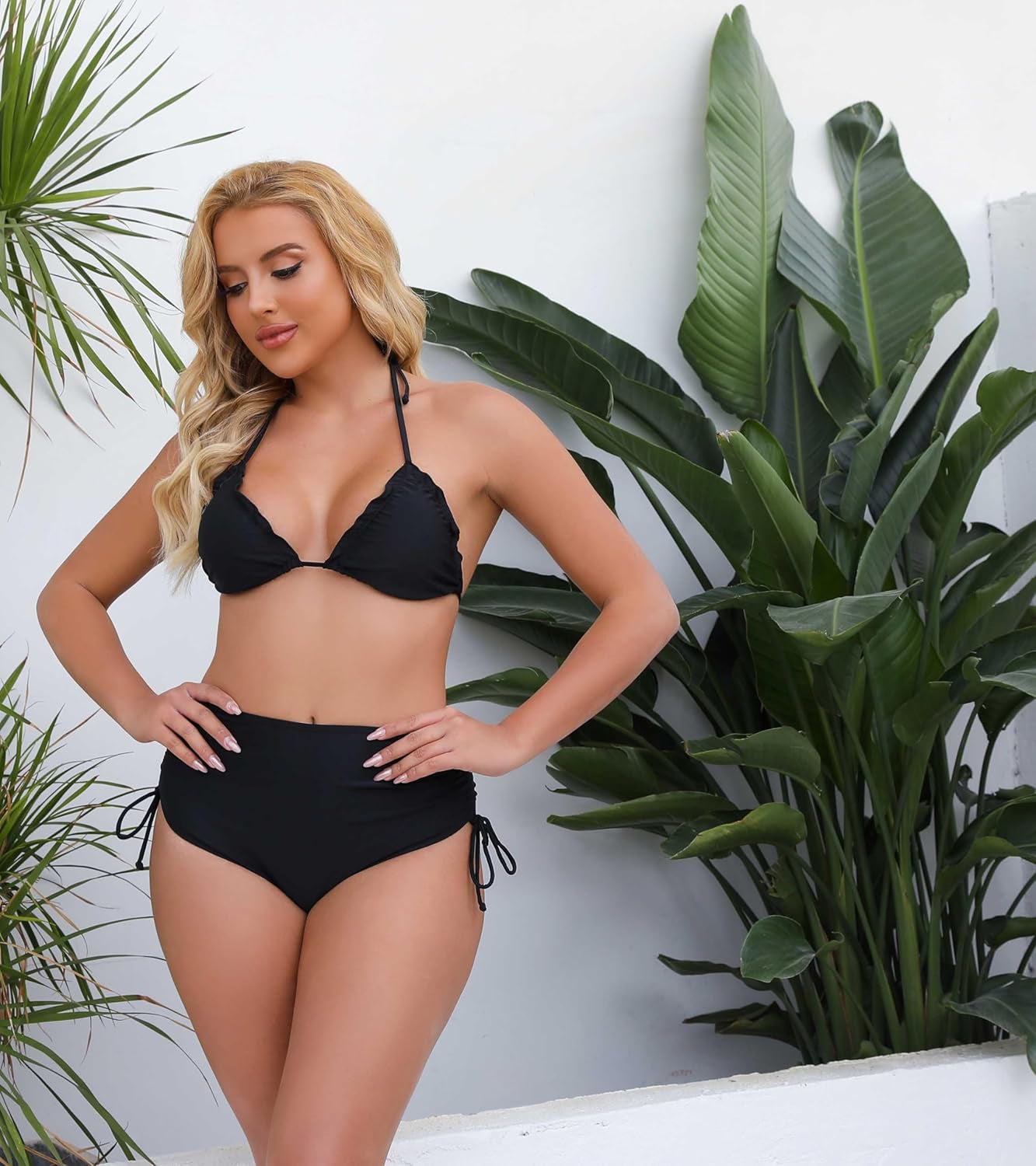 Women'S High Waisted Full Coverage Bikini Bottoms Tummy Control Adjustable Drawstring Swim Bottoms - Black1 / X-Large